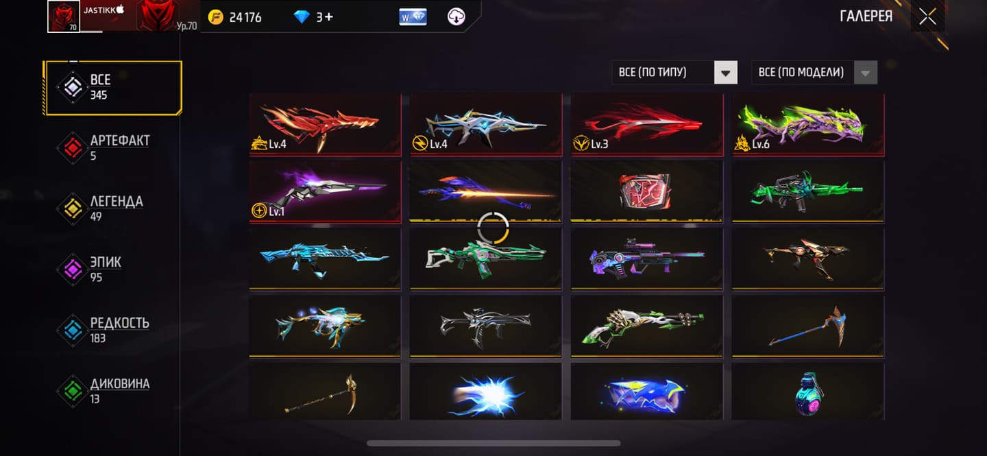 🌈Скины на оружие: 24;